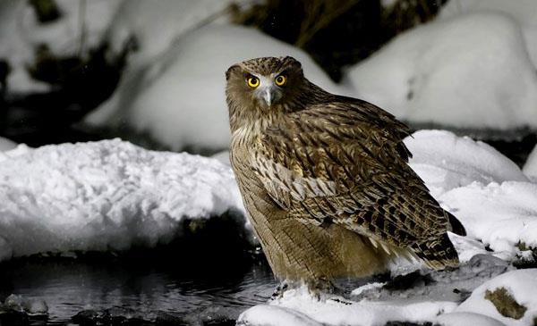 毛腿漁鸮:別名島梟_巴君之雕梟,為鸮形目、鴟鸮科、漁鸮屬鳥類,原產(chǎn)于亞洲西伯利亞東部、遠(yuǎn)東、薩哈林島、中國、朝鮮半島和日本北海道。棲息于低山闊葉林、混交林和山腳林緣與灌叢地帶的溪流、河谷等生境中,也出現(xiàn)于海岸和林區(qū)漁塘,特別是富有水生動物而隱藏條件較好的林區(qū)河流附近。1884年命名,共2個亞種。IUCN《世界自然保護(hù)聯(lián)盟》紅色名錄的瀕危物種。