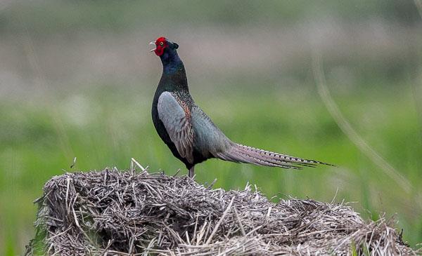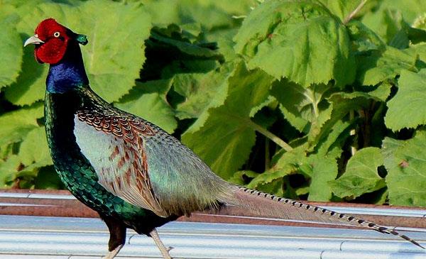 雌雄之間的大小,色彩差異明顯,雄雉臉部為紅色,勁部、胸部、腹部為暗綠色,尾長(zhǎng),有不少黑色的帶狀羽毛。雌鳥為淡褐色,身上帶黑色的斑紋,尾部短。