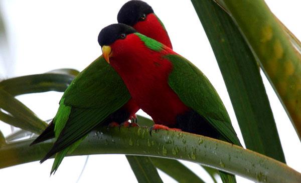 綠領(lǐng)吸蜜鸚鵡:別名綠領(lǐng)鸚鵡,為鸚形目、鸚鵡科、吸蜜鸚鵡屬鳥類,原產(chǎn)于大洋洲大斐濟(jì)島、勞列島。主要棲息于島上比較潮濕的森林地區(qū),偶爾會前往椰子園、人類居住地或花園等處活動。1800年命名。