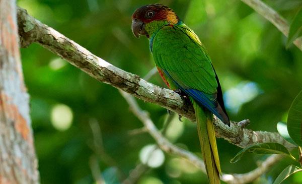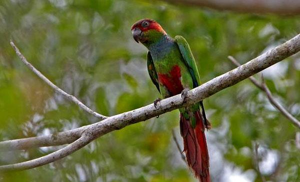 藍(lán)喉錐尾鸚鵡:別名藍(lán)喉鸚哥_赭斑鸚哥,為鸚形目、鸚鵡科、錐尾鸚哥屬鳥(niǎo)類(lèi),原產(chǎn)于南美洲巴西東部,從巴伊亞到里約熱內(nèi)盧。主要棲息于森林地區(qū)及邊緣地帶、毗連的開(kāi)闊鄉(xiāng)村地區(qū),會(huì)時(shí)常前往可可種植園中高大可以提供庇蔭的樹(shù)木休憩活動(dòng),偶爾也會(huì)造訪當(dāng)?shù)氐霓r(nóng)耕區(qū)。1820年命名。