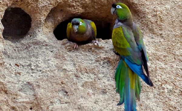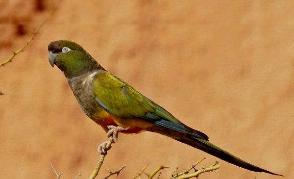 掘穴錐尾鸚鵡:別名掘穴鸚哥_巴塔哥尼亞錐尾鸚鵡,為鸚形目、鸚鵡科、錐尾鸚哥屬鳥類,原產(chǎn)于南美洲阿根廷、烏拉圭、智利、南美洲的南部等地,主要棲息于各種型態(tài)的開闊鄉(xiāng)村地區(qū),比較偏好靠近水源但刺叢生長的干燥地區(qū),以及水源附近仙人掌植物生長的干燥地區(qū)。1818年命名,共4個(gè)亞種。是季節(jié)性遷徙的鳥種,在寒冷的季節(jié)會(huì)往北飛,前往比較溫暖的氣候生活。