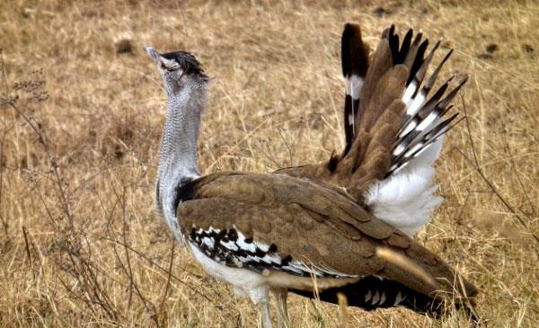 灰頸鷺鴇:別名柯利鳥(niǎo)_南非大鴇,為鶴形目、鴇科、鷺鴇屬鳥(niǎo)類,原產(chǎn)于非洲南部及東部部分地區(qū)。野生于平坦、開(kāi)闊、干燥的大草原和灌木叢林。1822年命名,共2個(gè)亞種。鳴叫時(shí),先將空氣吸入食囊中,使脖子鼓脹成平常的四倍,呼出空氣后,發(fā)出一串有六個(gè)音符的叫聲,每個(gè)音符間隔半秒鐘,并以抖動(dòng)新鈔票似的清脆響聲結(jié)尾。這是一種低沉而有回響的交配鳴叫。30秒鐘后,會(huì)再次吸入空氣,發(fā)出叫聲。在非洲,人為捕殺是灰頸鷺鴇生存的最大威脅。