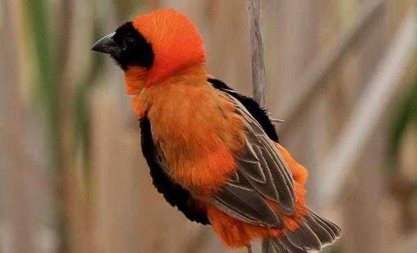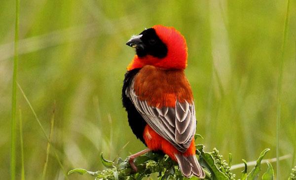 紅寡婦鳥:別名紅巧織雀,為雀形目、織布鳥科、寡婦鳥屬鳥類,原產(chǎn)于非洲南部,南非北至安哥拉、剛果民主共和國的南部及東部、烏干達(dá)南部及肯尼亞西南部。它們很少會(huì)在納米比沙漠及喀拉哈里沙漠出現(xiàn)。于繁殖季節(jié),它們會(huì)棲息在水邊的草叢、蘆葦、莎草或農(nóng)作物(如甘蔗)中,其他季節(jié)會(huì)遷到較干旱的草原及大草原。