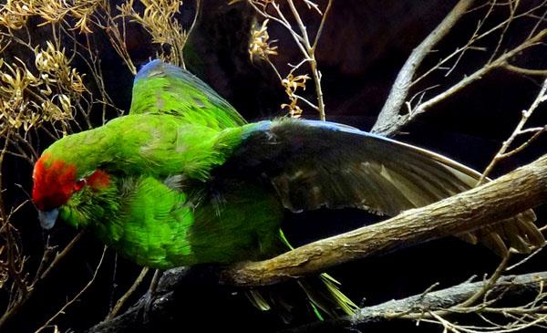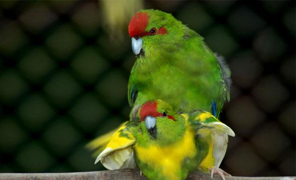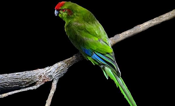 紅額鸚鵡:別名紅冠鸚鵡,為鸚形目、鸚鵡科、長尾鸚鵡屬鳥類,原產(chǎn)于大洋洲新西蘭和近海島嶼,包括三皇島、卡皮蒂島、斯圖爾特島、查塔姆群島等,目前已有部分島嶼滅絕。棲息于面積廣泛的林區(qū)、灌木叢、草地、森林邊緣地帶,在小島上延著海岸的地區(qū)等都是他們的活動范圍。1787年命名,共6個亞種。