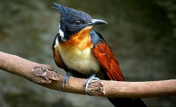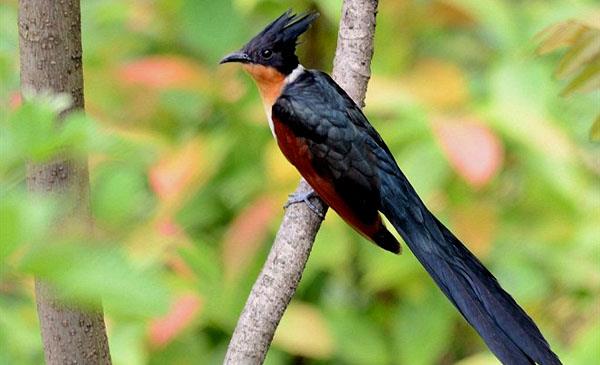 紅翅鳳頭鵑:別名冠郭公_紅翅鳳頭郭公,為鵑形目、杜鵑科、鳳頭鵑屬鳥類,原產(chǎn)于亞洲南部,中國(guó)、孟加拉、不丹、文萊、柬埔寨、印度、印尼、老撾、泰國(guó)、越南等國(guó)。我國(guó)分布于東南沿海和長(zhǎng)江流域等省區(qū)。棲息于低山丘陵和山麓平原等開闊地帶的疏林和灌木林中,也見(jiàn)于園林和宅旁樹上。多為留鳥,在中國(guó)臺(tái)灣地區(qū)為迷鳥。4月初開始遷來(lái),8月末開始遷走。種群數(shù)量較普遍,在森林保護(hù)中意義甚大。1766年命名,無(wú)亞種。