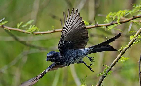 黑卷尾鳥:別名黑黎雞_籬雞_鐵煉甲_鐵燕子_黑烏秋_黑魚尾,為雀形目、卷尾科、卷尾屬鳥類,原產于亞洲中南部,伊朗至印度、中國、東南亞、爪哇及巴厘島,北美洲也有少量分布。多棲息于山麓或沿溪的樹頂、開闊地常落在電線上。1817年命名,共7個亞種。