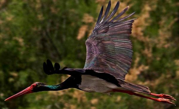黑鸛:別名烏鸛_鍋鸛_黑老鸛,為鸛形目、鸛科、鸛屬鳥類,原產(chǎn)于歐亞大陸及非洲部分地區(qū),棲息于河流沿岸、沼澤山區(qū)溪流附近,有沿用舊巢的習(xí)性。1758年命名,無亞種。黑鸛大多數(shù)是遷徙鳥類,只有在西班牙為留鳥,僅有少數(shù)經(jīng)過直布羅陀海峽到非洲西部越冬,此外在南非繁殖的種群也不遷徙,僅在繁殖期后向周圍地區(qū)擴散游蕩。在高樹或巖石上筑大型的巢,飛時頭頸伸直。