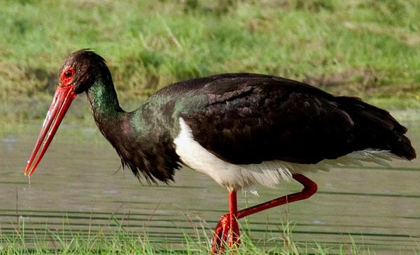 白俄羅斯國鳥,體態(tài)優(yōu)美,體色黑、白、紅對比十分鮮明,活動敏捷,性情機警。嘴長而粗壯,頭、頸、腳均甚長,嘴和腳紅色。身上的羽毛除胸腹部為純白色外,其余都是黑色,在不同角度的光線下,可以映出變幻多種顏色。