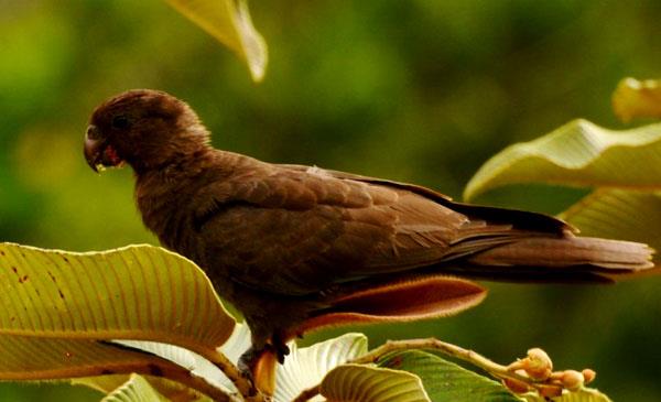 是塞舌爾的國鳥,鳥喙強勁有力,喙鉤曲,羽毛為黑棕色,尾羽的覆羽帶有不同程度的灰色斑紋。上頜具有可活動關節(jié),喙基部具有臘膜。肌肉質舌厚。腳短,強大,對趾型,兩趾向前兩趾向后,適合抓握和攀援生活。