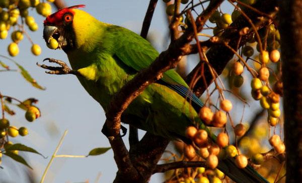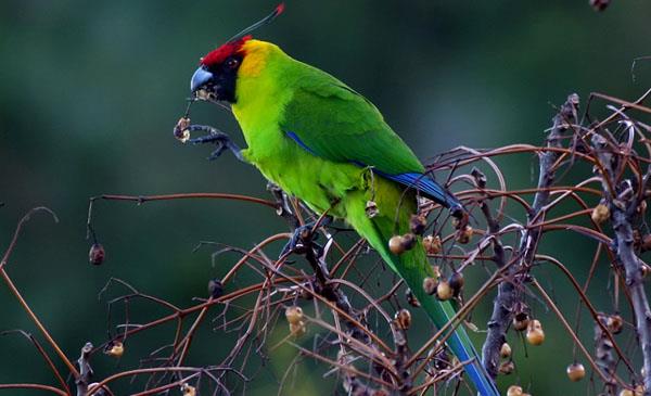 是非常稀有且昂貴的鸚鵡,羽色鮮艷,外表帥氣,體羽以綠色為主,額羽血紅,背部有黃色,紅額頂端有二束獨特的翎羽。在灌木叢和樹木上進(jìn)食,幾乎完全素食,吃花朵,堅果,水果,漿果和種子,也喜歡成熟的木瓜。