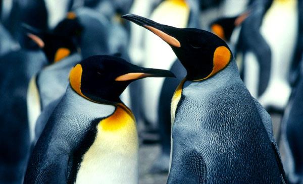 企鵝家族最大品種,世界上最耐寒的鳥類,唯一在南極冬季繁殖的企鵝,身披黑白分明的大禮服。帝企鵝與王企鵝常被混為一談,它們實際是不同的兩類。不同之處在于,帝企鵝身材比王企鵝大,頸部耳根處橙黃色斑紋是其最重要的特征。
