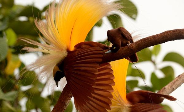 大極樂鳥:別名大天堂鳥_無腿極樂鳥,為雀形目、極樂鳥科、極樂鳥屬鳥類,原產(chǎn)于亞洲南部印尼、巴布亞新幾內亞,棲息于海拔950m以上的熱帶叢林。1758年命名,共2個亞種。