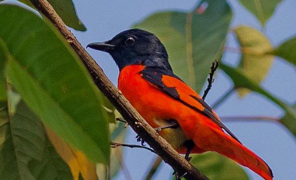 赤紅山椒鳥:別名紅十字鳥_朱紅山椒鳥,為雀形目、山椒鳥科、山椒鳥屬鳥類,原產(chǎn)于亞洲南部,中國、印度、斯里蘭卡、孟加拉、緬甸、越南、老撾、泰國、馬來西亞、菲律賓、印尼等地。我國主要分布于西藏東南部,往東經(jīng)云南、貴州、廣西、廣東、福建、江西和湖南南部和海南島等地。棲息于海拔2100m以下的山地和平原的雨林、季雨林、次生闊葉林以及也見于松林、稀樹草地或開墾的耕地。1781年命名,共3個亞種。