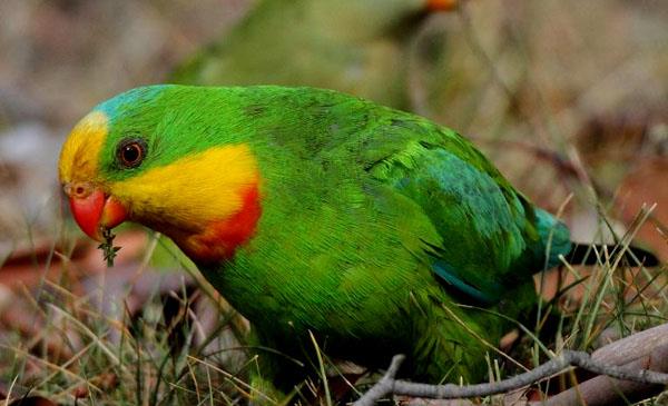 部分的超級鸚鵡會因過冬而有遷徙的行為,平時大多是群聚,鮮少成對單獨活動。繁殖季會聚集在一起。在覓食的時候戒心并不很重,大多選在破曉和下午3-4點覓食,會集體到地面上飲水,并且覓食草類植物的種子,其他的時間大多待在樹上。飛行的時候會伴隨尖銳的叫聲,類似雞尾鸚鵡但是音量更深沉,在覓食的時候則比較安靜,僅會發(fā)出輕柔的鳥語交談聲。