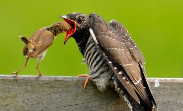 繁殖期間喜歡鳴叫,常站在喬木頂枝上鳴叫不息。繁殖期5-7月。求偶是雌雄鳥在樹枝上跳來跳去,飛上飛下互相追逐。稍停在飛到雌鳥身邊,也曾見到3只大杜鵑在一起追逐爭偶現(xiàn)象。大杜鵑無固定配偶,也不自己營巢和孵卵,而是將卵產(chǎn)于大葦鶯、麻雀、灰喜鵲、伯勞、棕頭鴉雀、北紅尾鴝、棕扇尾鶯等各類雀形目鳥類巢中,由這些鳥替它帶孵帶育。