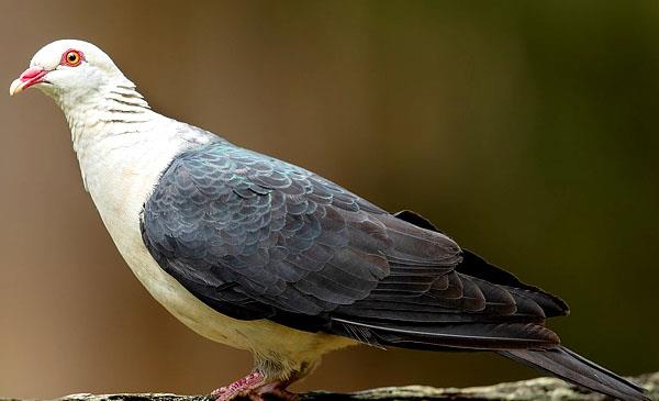 大洋洲獨有的野生鴿屬品種,喙粉紅,眼部有一圈粉紅色裸皮,頭部至腹部為白色,翅膀及背部為灰色。是色彩非常協(xié)調,體形很優(yōu)美的野生鴿品種。1821年命名,無亞種。