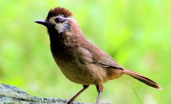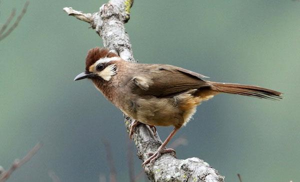 體長20-26cm,重50-80g。雌雄羽色相似。前額至枕深栗褐色,眉紋白色或棕白色、細長,往后延伸至頸側(cè)。背、肩、腰和尾上覆羽等其余上體包括兩翅表面棕褐或橄欖褐色,尾栗褐或紅褐色,飛羽暗褐色,外翈羽緣沾棕。頰、喉和上胸淡栗褐色或棕褐色,下胸和腹多呈淡棕黃色或淡棕色,兩脅暗棕色。特征明顯,野外容易識別。虹膜栗色,暗褐或茶褐色,嘴黑褐色,腳黃褐或灰褐色。相似種畫眉眼周白色,頰不為白色,明顯可與之區(qū)別。