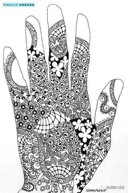 畫面進(jìn)行黑白灰的效果處理,在畫黑色塊要注意把黑色畫均勻。 黑:黑色塊。白:畫面的空白。灰:密集的線條形成灰色。黑白的處理可以增添物體與物體之間的層次感,畫面疏密有致。