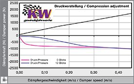 在日本自動(dòng)車規(guī)格(JASO C602)規(guī)定以作動(dòng)速度0.3m/s時(shí)的阻力大小來代表避震器的性能,我們稱為阻尼系數(shù),單位為Kgf,所謂較硬的避震器就是作動(dòng)時(shí)可產(chǎn)生比較大的阻力。當(dāng)我們讓避震器以非常慢的速度壓縮或拉伸時(shí),它的阻力只有來自機(jī)構(gòu)內(nèi)部的摩擦力,阻尼油幾乎不產(chǎn)生阻力。