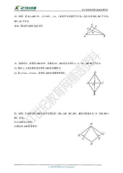 二(通過四邊形) ②在四邊形ABCD中: ∠ABC=∠BCD=∠CDA=90o ∴四邊形ABCD為矩形。 說明: (l)所給四邊形添加的條件不滿足三個的肯定不是矩形; (2)所給四邊形添加的條件是三個獨立條件,但若與定理不同,則需要利用定義和判定定理證明或舉反例,才能下結論.面積S=ah(注:a為邊長,h為該邊上的高) S=ab(注:a為長,b為寬) 菱形定義在一個平面內,一組鄰邊相等的平行四邊形是菱形.性質1、對角線互相垂直且平分,并且每條對角線平分一組對角; 2、四條邊都相等; 3、對角相等,鄰角互補; 4、每條對角線平分一組對角, 5、菱形既是軸對稱圖形,對稱軸是兩條對角線所在直線,也是中心對稱圖形, 6、在60°的菱形中,短對角線等于邊長,長對角線是短對角線的√3倍。