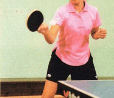 (2)握拍方法與第一種基本相同,但拇指與食指之間的距離較大(鉗形較大)。這種握拍法有利于上臂和前臂的集中發(fā)力。因此,中、遠(yuǎn)臺(tái)攻球,正手攻球,扣殺球都比較有力。但由于拇指與食指之間的距離較大,握拍較深,對(duì)手腕的靈活性有一定的影響,對(duì)處理臺(tái)內(nèi)球、轉(zhuǎn)球、推擋球和追身球差。