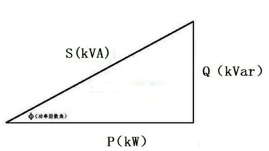 我們可以把三種功率畫成功率三角形,兩個直角邊分別表示有功功率和無功功率,斜邊表示視在功率。