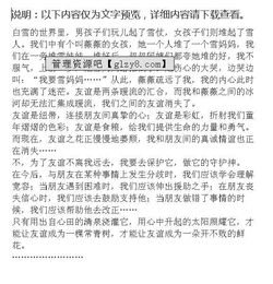 在以后幾天,我一直沒理她友誼是關(guān)心,友誼是互助,友誼是春風(fēng),友誼是暖流,友誼是一個(gè)人進(jìn)步的動(dòng)力。我在與好朋友余凌霄的交往中,品味到了真誠的友誼。