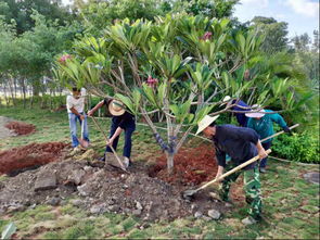 在校園的草地上,同學們一起松土種植樹木。老師讓我們修剪花樹,然后叫我們把花盆整齊地排列在走廊上,整條走廊看起來頓時充滿了朝氣。