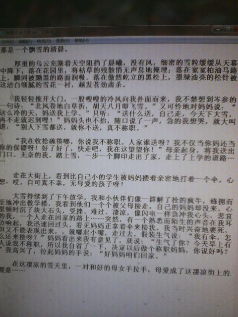 的筆,我高興萬分。中午放學(xué)回到家,我笑著對媽媽說:“謝謝您,老媽,給我送筆來。”“什么?”媽媽有些丈二的和尚摸不著頭腦,“昨晚我用了還沒還給你了?!?;;;頓時,我只覺得有一股暖流充滿全身,不由得讓我在這嚴(yán)寒的冬日里感到了春天般的溫暖。明白了,一切都不得明白了,他的心和這支筆一樣亮晶晶的,多么的純潔,多么的高尚。我的心被這支筆、被這顆純潔、高尚的心所深深地震撼著。