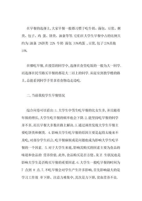 中學(xué)生早餐飲食調(diào)查報(bào)告
