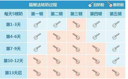 原來的奶粉和新牌子奶粉在第一天按照4:1混合吃,兩天后增加新奶粉量按照3:1,再觀察肚子能適應(yīng)就2:2,然后1:3,最后全部換成新奶粉,具體時間可根據(jù)寶寶情況調(diào)整。