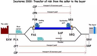 5、裝船通知:裝運前后賣方均應(yīng)及時向買方發(fā)出裝船通知。 6、風(fēng)險點:賣方在裝運港將貨物裝船后的風(fēng)險即轉(zhuǎn)移到買方。